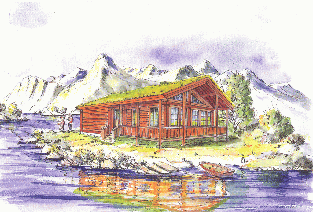 2 soverom, stor stue og overbygget terrasse. Kan leveres med eller uten hems.